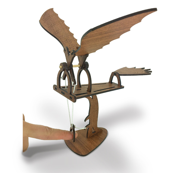 Flying has always been a dream of humans, and Leonardo’s fascination with birds and flight was evident in his many studies of human powered flying machines.It remains a mystery if his ornithopter designs were ever made and tested,but we have made a fun model that you can make , flap and ponder Leonardo’s inquisiosity!